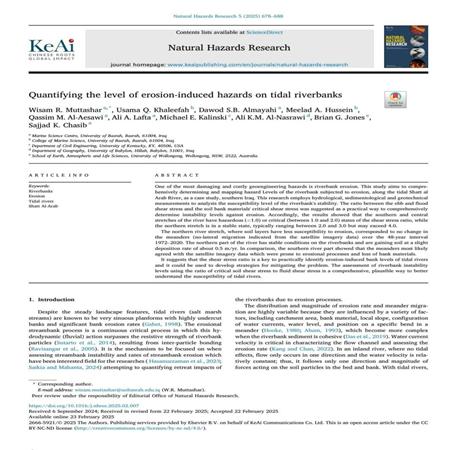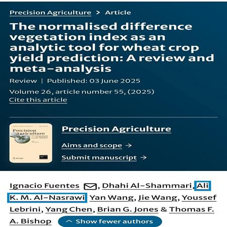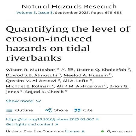تدريسي في كلية التربية للعلوم الإنسانية ينشر ثلاث بحوث علمية في مجلات عالمية رصينة.تبارك أسرة كلية التربية للعلوم الإنسانية في جامعة بابل للأستاذ الدكتور (علي كريم محمد شويخ النصراوي) التدريسي في قسم الجغرافيا بمناسبة تحقيقه منجزًا علميًا متميزًا خلال عام 2025، والذي تُوِّج بنشر ثلاثة بحوث علمية رصينة عكست عمق الخبرة العلمية، ورصانة المنهجية البحثية، وتميز الموضوعات والمعالجات، فضلًا عن نشرها في مجلات علمية دولية مرموقة صادرة عن دور نشر عالمية ذات معاملات تأثير متقدمة. ويُعد هذا المنجز مسك ختام لعام حافل بالعطاء العلمي، وبادرة خير وبداية واعدة لعام جديد مليء بالإنجازات العلمية. وفيما يأتي عرض موجز للبحوث المنشورة:#أولًا: البحث الأولتناول البحث استخدام تقنيات الاستشعار عن بعد، ولاسيما مؤشر الغطاء النباتي المعياري (NDVI)، بوصفه أداة تحليلية لقياس التباين في الغطاء النباتي والتنبؤ الزراعي، من خلال مراجعة علمية وتحليل ميتا-تجميعي. وقد نُشر البحث في مجلة دولية متخصصة في مجال الزراعة الدقيقة المتقدمة، الصادرة عن دار النشر الألمانية Springer، ذات معامل تأثير مرتفع جدًا (Impact Factor = 7.4)، وبالتعاون مع باحثين أجانب من سنغافورة وأستراليا وتشيلي. ?? https://doi.org/10.1016/j.nhres.2025.02.007#ثانيًا: البحث الثانياختص هذا البحث بمجال الجيومورفولوجيا الساحلية، وركز على تحديد مستويات المخاطر الناجمة عن التعرية والتآكل على ضفاف الأنهار المتأثرة بأمواج البحر المدية. وقد نُشر في مجلة بحوث المخاطر الطبيعية (Natural Hazards Research) التابعة لدار النشر الهولندية Elsevier، وبـ معامل تأثير مرتفع (Impact Factor = 6.6)، وبالتعاون مع باحثين من جامعة سندي في أستراليا وجامعة البصرة. ?? https://doi.org/10.7343/as-2025-917#ثالثًا: البحث الثالث.ركز هذا البحث على تحليل وتقييم جودة المياه الجوفية في المناطق الساحلية المتأثرة بمياه البحر، باستخدام النمذجة الجيوكيميائية والتحليل الإحصائي، متخذًا من منطقة أم قصر وما يحيط بها في محافظة البصرة نموذجًا تطبيقيًا. وقد نُشر البحث في مجلة Acque Sotterranee الإيطالية المتخصصة بالمياه الجوفية، وهي من أقدم المجلات الأوروبية في هذا المجال، وبـ معامل تأثير (Impact Factor = 0.7)، وبالتعاون مع باحثين من جامعة البصرة. ?? https://doi.org/10.1007/s11119-025-10247-zمزيدًا من الإبداع والسمو والرقي العلمي لجناب الأستاذ الدكتور علي كريم النصراوي الموقر.#إعلام_الكلية........