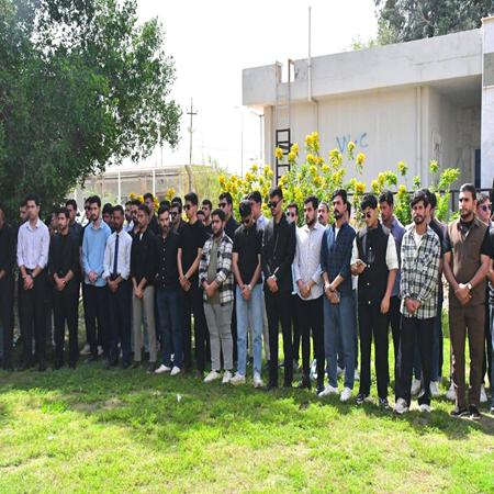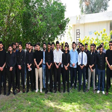كلية التربية للعلوم الإنسانية تُقيم وقفة حداد على روح الطالبة الراحلة (زينب أحمد حسن).أقامَ قسم اللغة الإنكَليزية بكُلية التربية للعلوم الإنسانية في جامعة بابل وقفة حداد وقراءة سورة الفاتحة ترحمًا على روح الطالبة في المرحلة الثالثة (زينب أحمد حسن) التي انتقلت إلى رحمة الله تعالى بسبب حادث سير مؤسف. وقد حضر هذه الوقفة السيد عميد الكلية، الأستاذ الدكتور محمود محمد حسن الشمري، ومعاونه للشؤون العلمية، الأستاذ الدكتور حمزة خضير أفندي القريشي، بالإضافة إلى رؤساء الأقسام، وعدد من أساتيذ الكلية وموظفيها وطلبتها.وتأتي هذه الوقفة تعبيرًا عن تعازي ومواساة أسرة الكلية لفقدان الطالبة الراحلة، سائلين الله تعالى أن يتغمد الفقيدة بواسع رحمته وعظيم مغفرته، وأن يلهم أهلها وذويها الصبر والسلوان. إنا لله وإنا إليه راجعون.#إعلام_الكلية.......